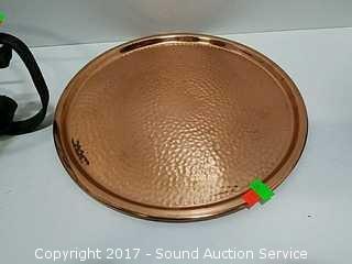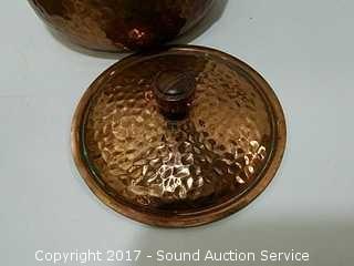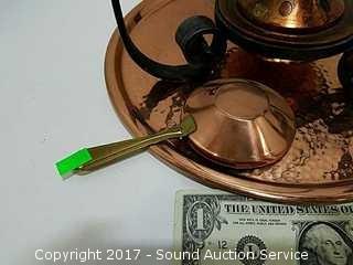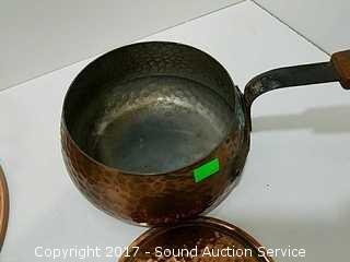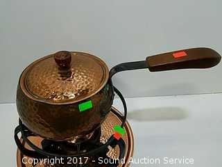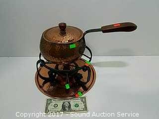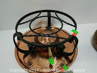 Lot #0105: Hand Hammered Pot, Tray w/Cast Iron Chafing Dish