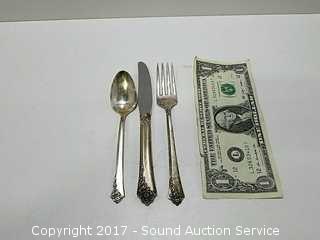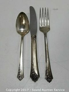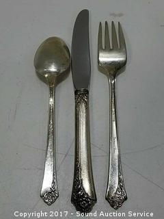 Lot #0230: Heirloom Sterling Damask Rose, Knife, Fork & Spoon