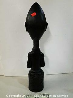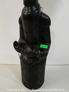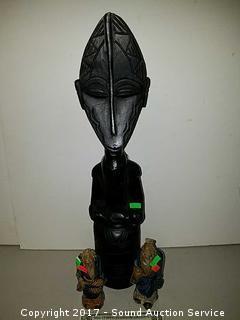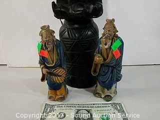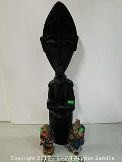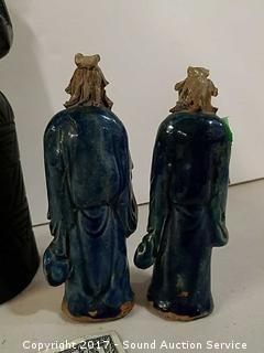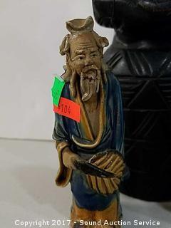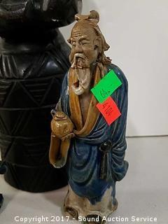 Lot #0238: Oriental Carved Wooden Statue & Clay Figurines