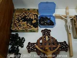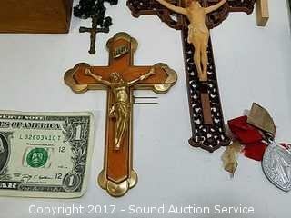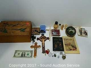 Lot #0212: Religious Prayer Box w/Crucifixes, Holy Water-