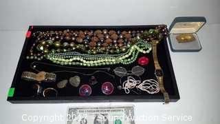 Lot #0148: Tray of Fashion Jewelry & Caravelle Mens Watch