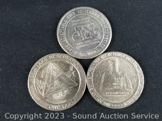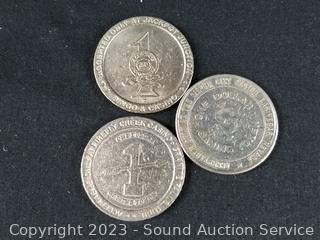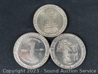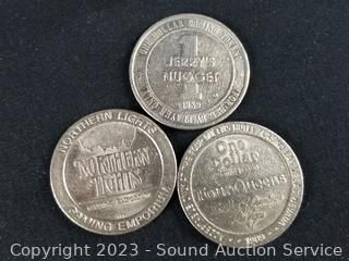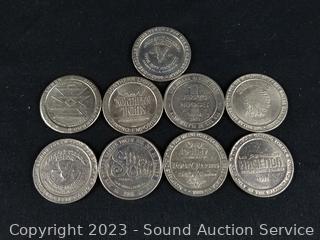 1991 Hacienda $1 Token, 1989 Jerry' Nugget $1 Token, 1989 Four Queens $1 Token, 1990 Royal River $1 Token, Northern Lights $1 Token, (2) 1992 Firefly Creek $1 Token, 1986 Silver City $1 Token, 1984 Jackpot Junction $1 Token. ATTN: We are not coin or currency experts or graders, please use your own judgement when bidding.