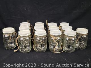 Lot #0096: 14ct Ball Pint Canning Jars w/Mini LED String Lights