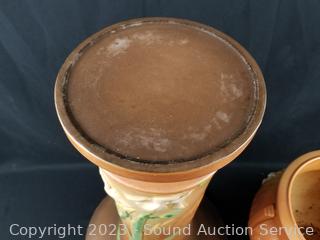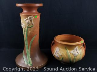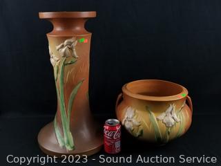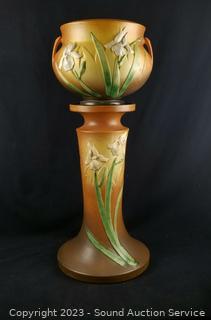 Lot #0222: 1939 Roseville Iris Brown Pottery Planter Pot w/Pedestal