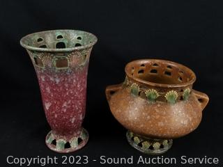 Lot #0202: 2 Antique 1930 Roseville Pottery Ferella Vases