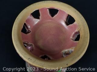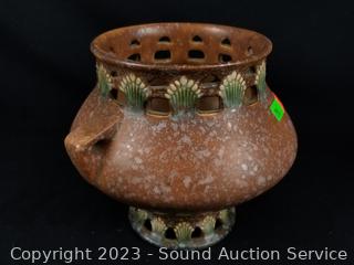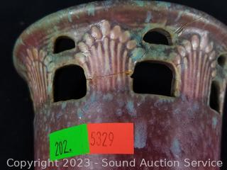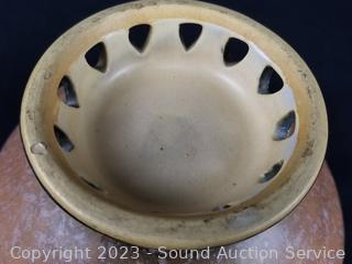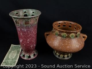 Brown vase has some minor crazing, don't see any major issues, 6" H x 7" Dia. Till vase top edge has been broken and repaired, some crazing on the inside, 8.25' H x 4.75" Dia.