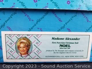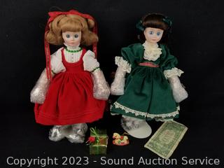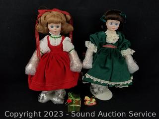 Lot #0097: 2 Madame Alexander 1990 Porcelain Christmas Dolls