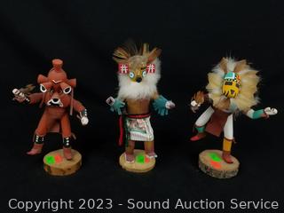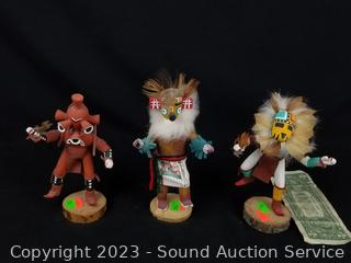 Lot #0216: 3 Handcrafted Signed Navajo Kachina Dolls