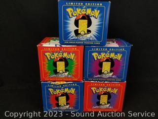 Lot #0215: 5 1998 Pokémon 23K Gold Plated Trading Cards