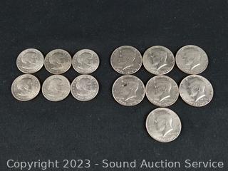Lot #0052: (6) Susan B. Anthony $1, (7) Bicentennial Kennedy 1/2 Dollars