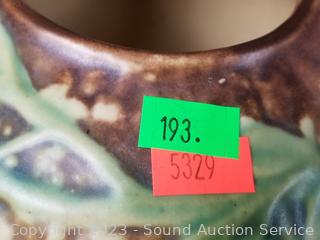 Gold Roseville sticker on the bottom. Minor crazing on the inside, don't see any major issues. 5.25" H x 6.25" Dia.