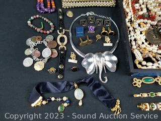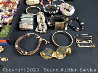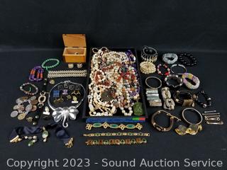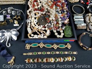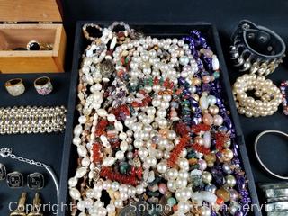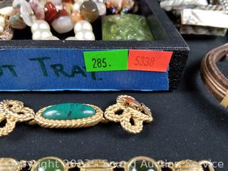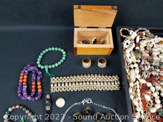Necklaces, bracelets, rings, pins, trinket box, etc.