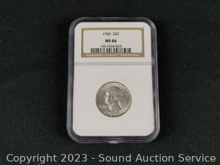 Lot #0065: Graded MS66 1950 90% Silver Washington Quarter