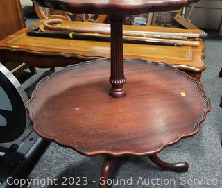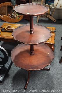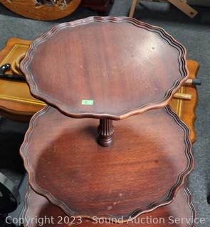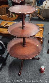 Lot #0017: Vtg. Mahogany Cherry 3-Tier Piecrust Table