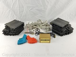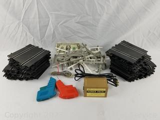 Lot #0142: Vtg. Slot Car Racetrack, Transformer, Accessories, Controllers