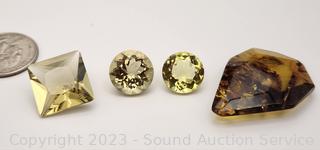 Unsure what they are other than the amber. Use your own judgement when bidding. Amber 24.15CTW, Round 12.15CTW, Round 9.40CTW, Square 19.80CTW.