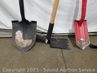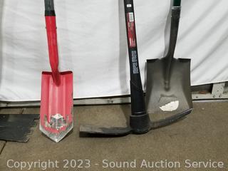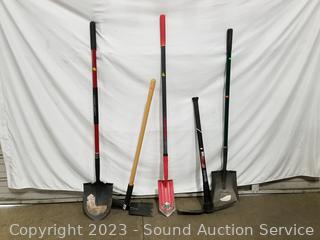 Lot #0315: 3 Shovels, 2 Mattocks Digging Tools