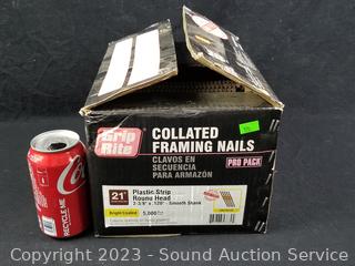 Lot #0175: 5000pk Plastic Strip 2-3/8"x.120 Round Head Smooth Shank Nails