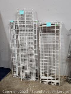 No hanging hardware. (2) 47.5" x 15.5", (2) 58" x 12", (4) 49.5" x 22.5". Signs of wear from use. 2 are Garage Tek.
