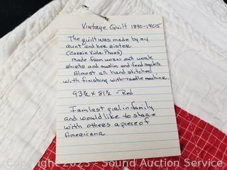 Lot #0129: Antique 1890-1905 Handmade Quilt w/Provenance