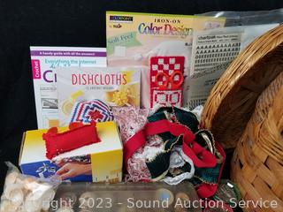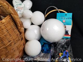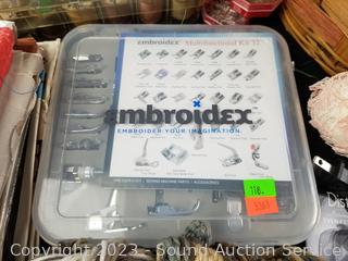 Embroidex sewing machine feet, sewing patterns, foam spheres, easy punch embroidery machine, bobbins, small iron, clips, woven basket & more. Refer to photos for more info.