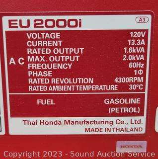 Lot #0286: Honda EU2000i Companion 30a Gas Generator - Works