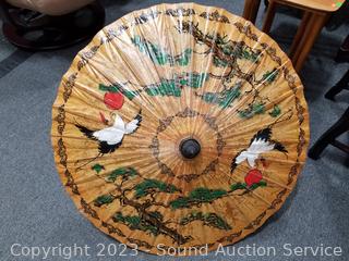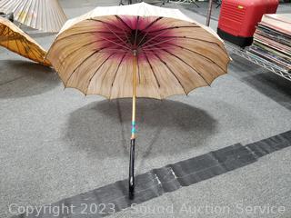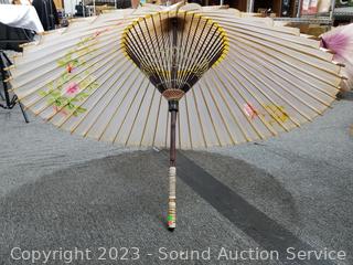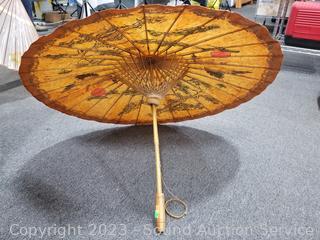 Lot #0066: 2 Vtg. Bamboo Paper Parasols & Umbrella