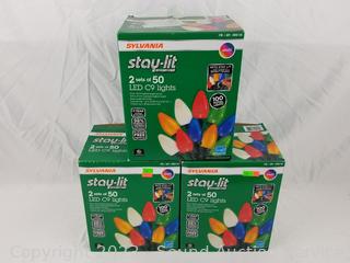 Lot #0284: (3) 2pk Sylvania Saty-Lit LED C9 String Lights - All Work