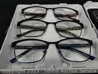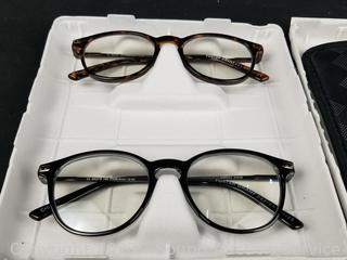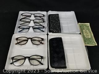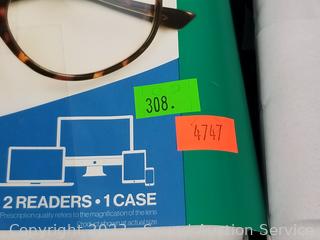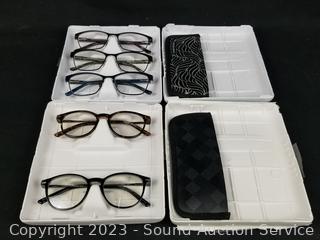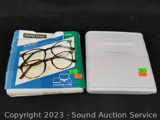 Lot #0308: 3 Foster Grant +2.0 Reading & 2 Blue Light Glasses w/2 Cases
