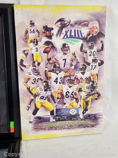 Super Bowl XLIII giclee print, 12" x 18". Mirrored Sign, 22.5" x 17.5". MVP Pics Locker Room Photo #55624. 18.5" x 22.5". Don't see any major issues.