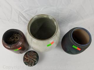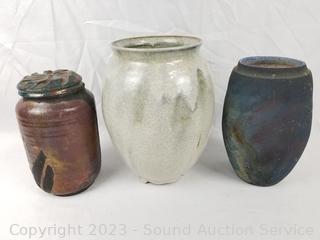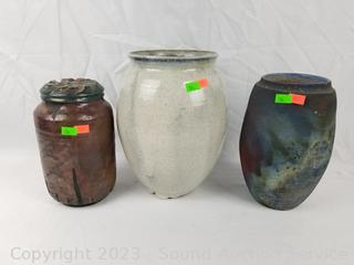 Lot #0136: 3pc Raku Pottery Vases, Urn