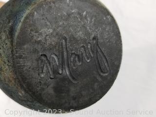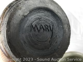 With information on the construction. All signed by Mary Maya. 7.5" to 9.5" H x 4.5" to 7" Dia. Don't see any issues.
