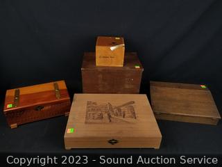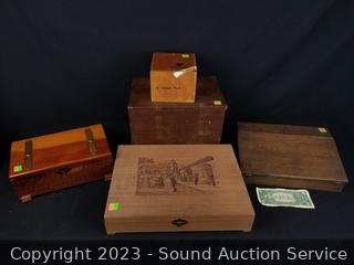 Lot #0111: 5 Wood Trinket, Writing, Cigar Boxes
