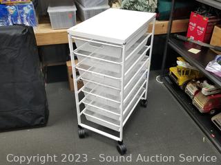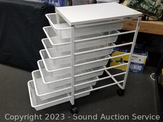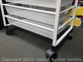 Lot #0210: 7-Tier White Wire/Mesh Rolling Organizer