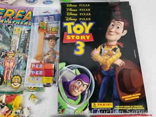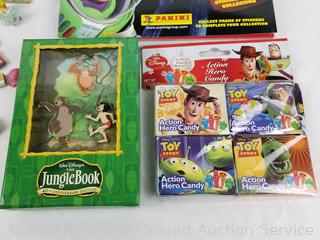 1998 The X-files Agent Fox Mulder, The Simpson Tin Lunch Box, Mad Libs Card Game, Toy Story Magnets/Candies, Pez Dispenser, The Jungle Book pins, miniature doll house kitchen accessories, sealed Minions Monopoly game, Toy Story 3 Sticker Albums. Refer to photos for more info.