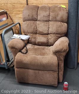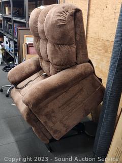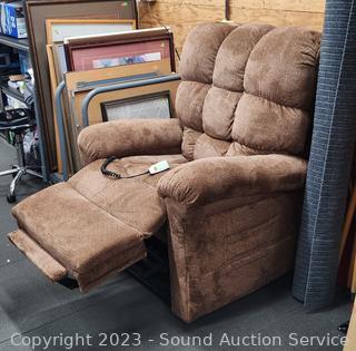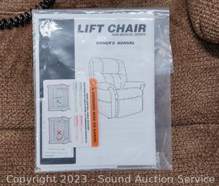 Lot #0003b: Brown Upholstered Power Lift Chair Recliner - Works