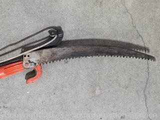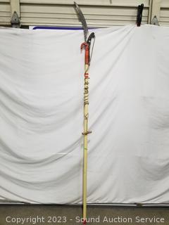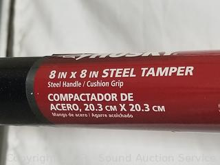 8" x 8" Tamper, Libman swivel head scrub brush, 12ft telescopic tree limber, snow shovel, cultivator, 5ft surveyor tripod.