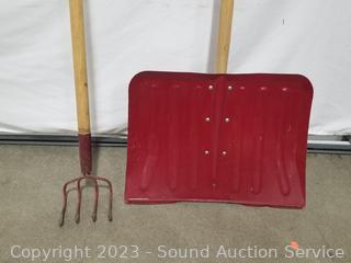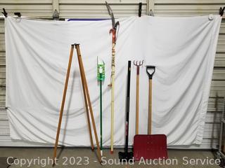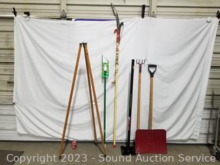 Lot #0203: Lawn & Garden Tools, Tripod, Scrub Brush