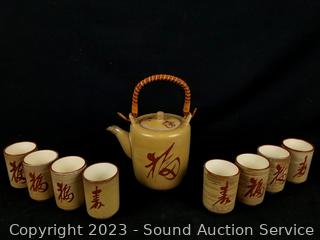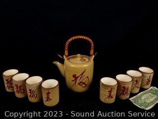 Lot #0138: Oriental Pottery Teapot w/8 Cups