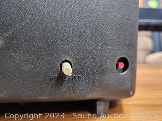 Has power, gets static, makes sound. Some minor discoloration on the ivory portion.