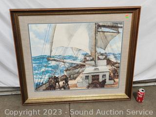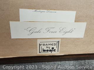 Limited print of originally by Montague Dawson, titled "Gale Force Eight". Professionally framed, matted with glass. 34." x 39". Some minor scuffs on frame.