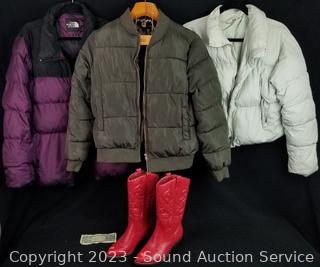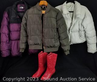 Lot #0285: 3 Nice Ladies Jackets & Red Cowboy Boots S:6