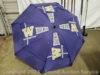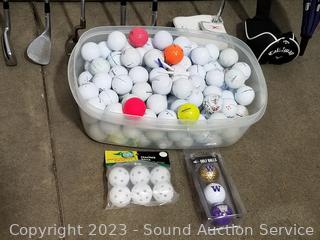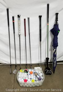 Lot #0244: Assorted Golf Balls, Huskies Umbrella & Clubs
