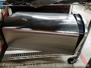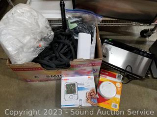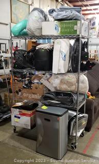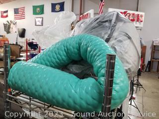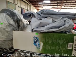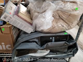 Solar indoor/outdoor string lights, vacuum sealers (no power), fan, air fryer, pool noodle, wading pool, air bed, stainless step trash cans (dents), 100ft garden hoses (broken male ends), and more. ATTN: Items may be missing pieces, damaged, not functioning, complete, no issues, etc. All items as is. Refer to photos for lot contents. Cart NOT included.