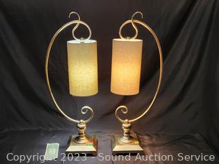 Lot #0020: Pair of Gold Finish Metal Table Lamps