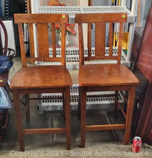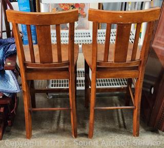 Lot #0013: Pair of Medium Finish Wood Counter Height Chairs