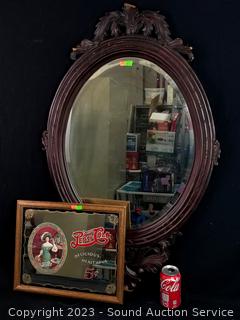 Lot #0259: Pepsi-Cola Mirror, & Large Carved Oval Mirror
