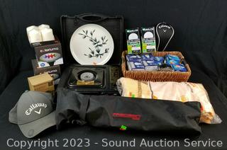 18pk 18" x 18" Microfiber Towels, Camera Tripod, LED Light Bulbs, LED RGB Solar Stake Lights, Faucet Nozzles, Massaging Shower Head, Candles, Callaway Cap, Portable Gas Range, Club Cover. Don't see any issues.