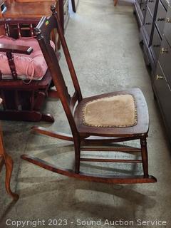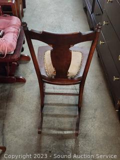Lot #0011: Vintage Mahogany Upholstered Rocking Chair