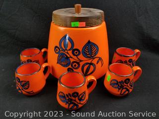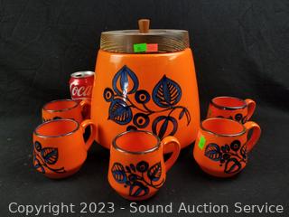 Lot #0060: Vtg. Schramberg Tivoli Hand Painted Pottery Tureen w/5 Mugs